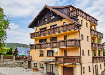 Centrum miasta Karpacza. Apartament, pokoje o podwyższonym standardzie, tanie pokoje gościnne. W pokojach-nowe łazienki,TV SAT, internet. Część pokoi posiada widokowe balkony lub tarasy.Na posesji duży parking, miejsce do grilowania. Wyżywienie obok obiektu. Zapraszamy na majówkę!